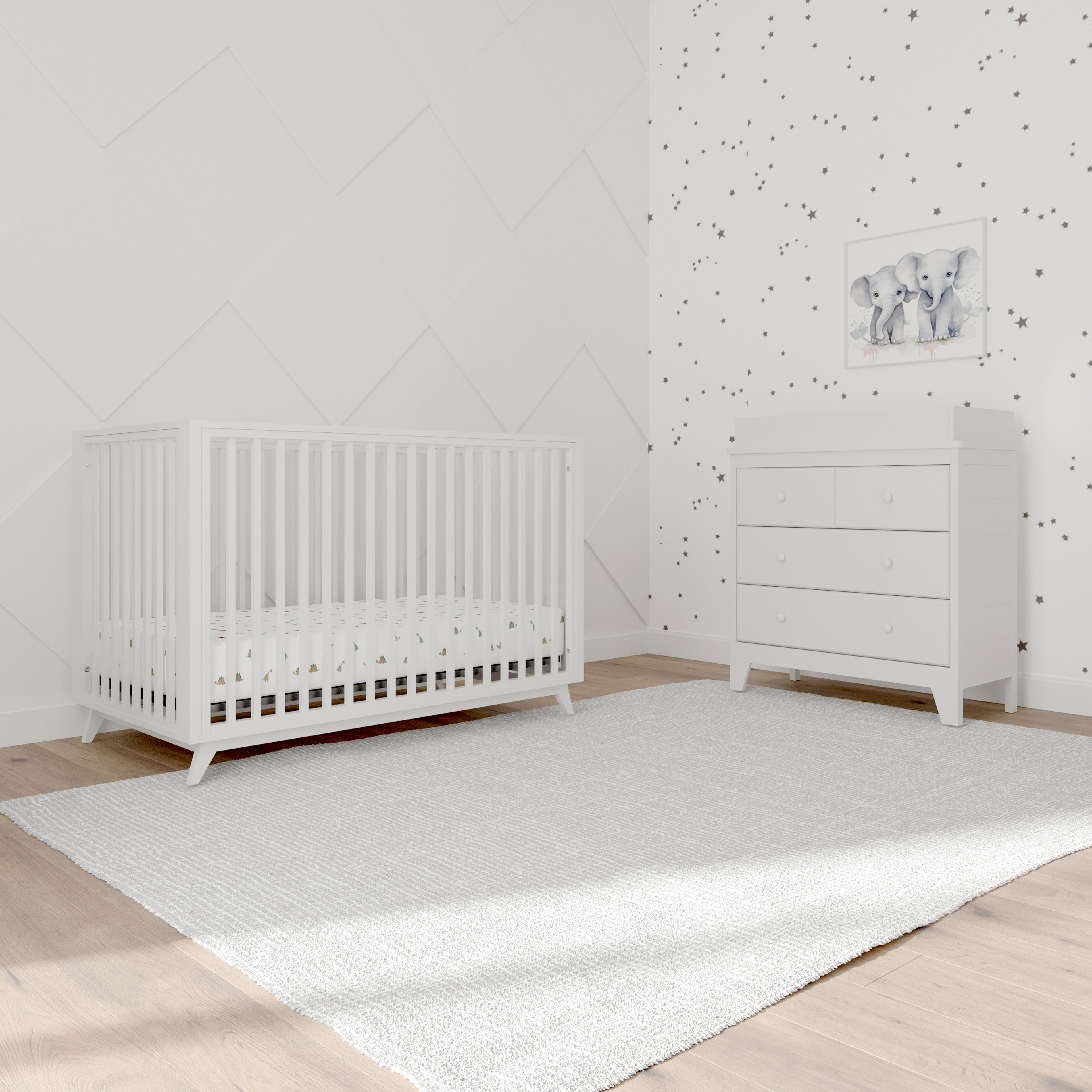 The perfect bed that evolves with your child Time flies – and babies don’t stay little for long! That’s why we’ve designed this convertible crib that’ll “grow” with your kid. Adjust the height to one of four levels ranging from newborn to toddler. And when your little one is no longer a baby, just put in the toddler rail! Now that’s an affordable choice. Safety and peace of mind New parents don’t get a lot of sleep – so we’ve got something that’ll add to your peace of mind at night. This crib is ASTM certified and meets all current standards. Your little treasure will be safe in this solid wood bed! Added storage This crib is so well thought out, not an inch of space is lost! We’ve added a large drawer under the bed, so you have more storage space for all those toys, clothes, and accessories a--